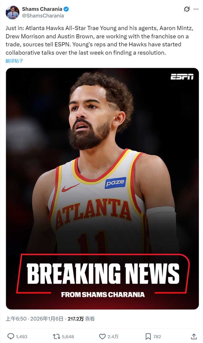 Shams老哥爆料,杨市长去意已决,已于今日叩开了老鹰管理层大门,主动商讨离队交易方案。